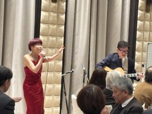 開会のご挨拶に続き、赤座先生の演奏とともに、ジャズシンガー今岡友美さんによるライブパフォーマンスが披露され、上質で華やかなひとときに。
